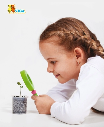 Drewniana lupa Żabka dla dzieci od Viga, wspiera ciekawość i odkrywanie świata. Idealna zabawka dla małych detektywów.