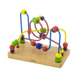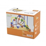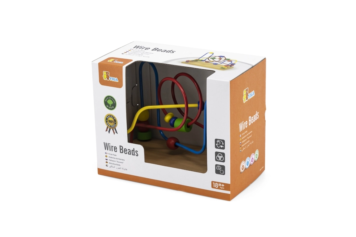 Ten wysokiej jakości drewniany labirynt z koralikami to idealna pomoc w rozwoju umiejętności dziecka. Dzięki płynnemu przesuwaniu koralików po różnie wyprofilowanych drutach dzieci ćwiczą chwyt, koordynację ruchową i percepcję wzrokową. Solidna drewniana podstawa zapewnia stabilność, a gładkie krawędzie i nasycone kolory sprzyjają bezpiecznej i atrakcyjnej zabawie.