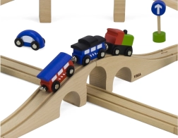 - Tory, 2 × lokomotywa, 4 × wagon, 3 × samochodzik, akcesoria (znaki, drzewa, domki itp.)
