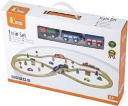 Zbuduj własny świat na torach! Drewniana kolejka o różnorodnym układzie tras pozwala dzieciom tworzyć rozmaite połączenia, pokonywać mosty i łączyć transport z miastem dzięki dołączonym samochodzikom i akcesoriom. Wysokiej jakości drewniane wykonanie jest trwałe i przyjemne w trzymaniu.