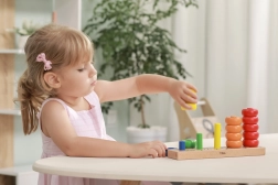 Kolorowe krążki na kołeczkach uczą dzieci rozpoznawania kolorów, segregowania i liczenia krok po kroku w formie zabawy.