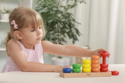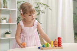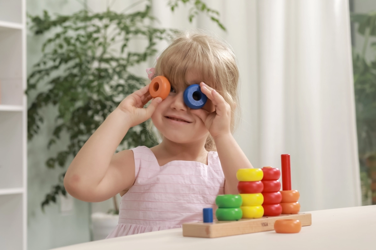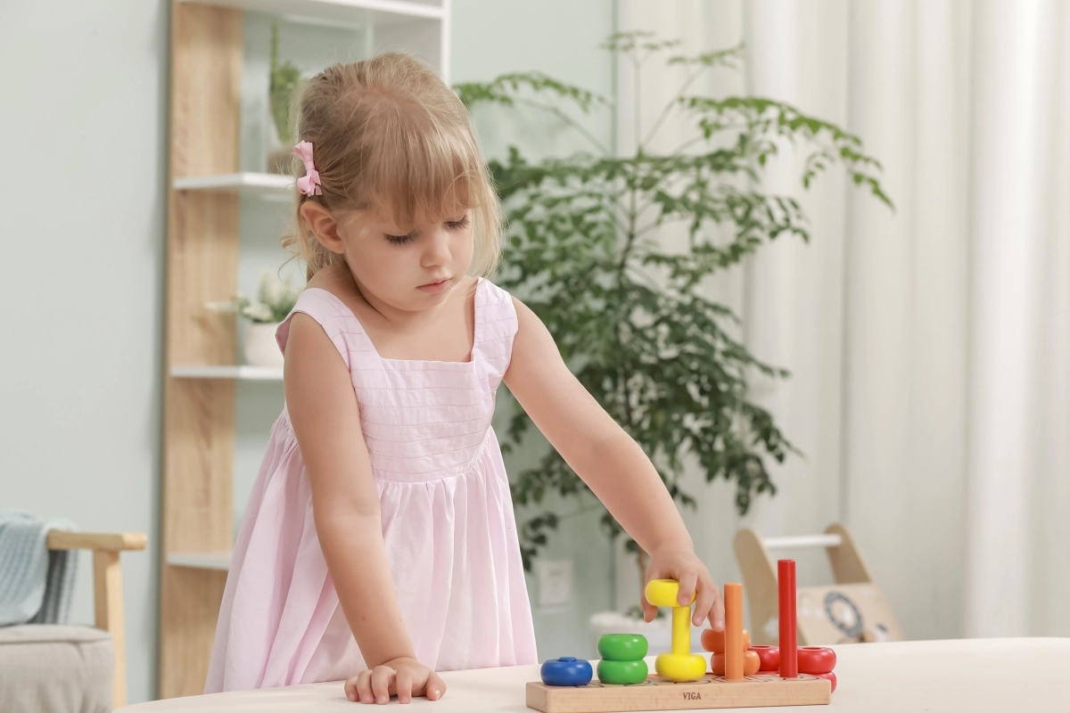 Nawlekanie krążków wspiera precyzję ruchów, cierpliwość i koncentrację – idealne dla przedszkolaków.