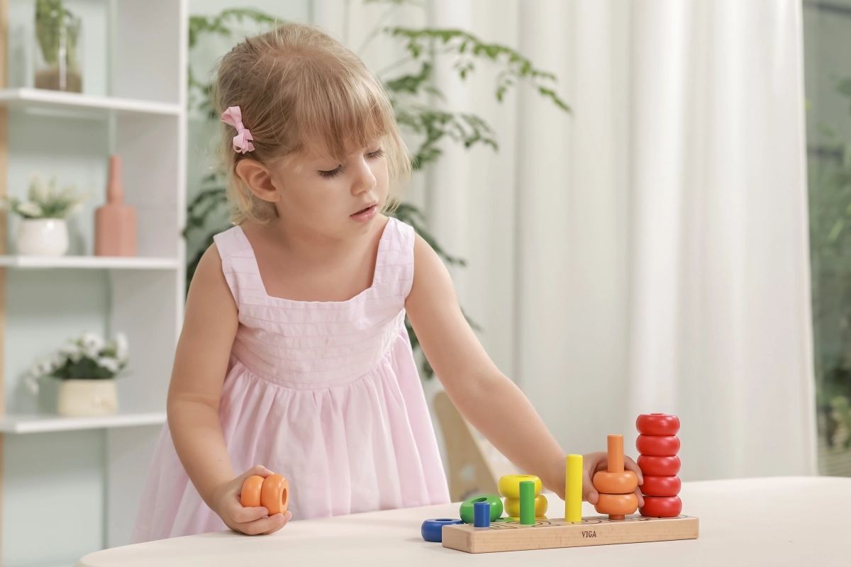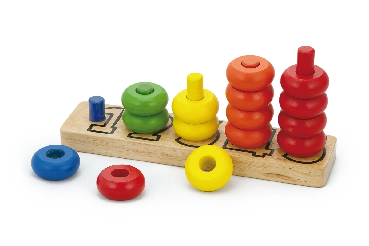 To trwałe drewniane liczydło zapewnia dzieciom bezpieczną i intuicyjną formę nauki. Na solidnej podstawie znajdują się pionowe kołeczki, na które dzieci nawlekają kolorowe krążki, segregują je według koloru i ilości oraz ćwiczą pierwsze umiejętności matematyczne. Zabawka wspiera logiczne myślenie i koncentrację.