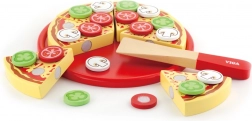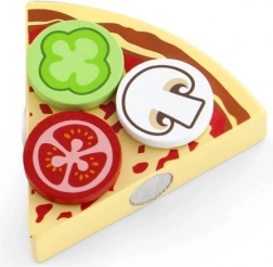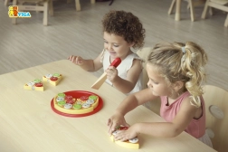 Pizza jest podzielona na kawałki i uzupełniona łopatką/nożykiem, dzięki czemu dzieci mogą kroić i podawać jak w prawdziwej pizzerii.