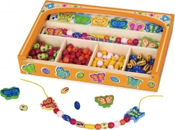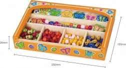 Ten bogaty zestaw drewnianych koralików oferuje szeroką paletę kolorów, kształtów i rozmiarów, dzięki czemu dzieci łatwo stworzą własne bransoletki czy naszyjniki. Przejrzyste przechowywanie w solidnym drewnianym pudełku ułatwia organizację i wielokrotną zabawę.