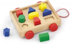 Drewniana układanka – wózek oferuje dzieciom zabawną i edukacyjną drogę do doskonalenia małej motoryki. W zestawie znajduje się wózek o wymiarach 24,5 x 22 x 7 cm oraz 9 kolorowych klocków o różnych kształtach, które należy prawidłowo dopasować. Ten wózek motywuje dzieci do zabawy, jednocześnie ucząc rozpoznawania kształtów.