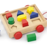 Wózek zawiera różne figury geometryczne, które pozwalają dzieciom w zabawny sposób uczyć się rozpoznawać różne kształty.