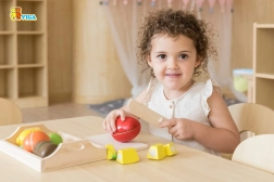 Dzięki rzepowi owoce można jednym ruchem kroić i ponownie łączyć, co wspiera rozwój małej motoryki.