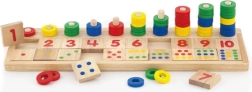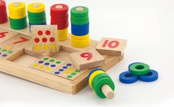 Za pomocą kolorowych pierścieni i ponumerowanych płytek dzieci mogą rozwijać swoje umiejętności matematyczne i myślenie numeryczne.