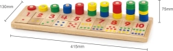 Zabawka jest wykonana z ekologicznego drewna, co zapewnia bezpieczeństwo i przyjemne wrażenia w dotyku. Dzięki łatwo zdejmowanym płytkom z cyframi dzieci mogą także uczyć się prostych zadań matematycznych, takich jak dodawanie i odejmowanie.
