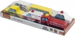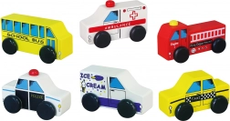 Dziecięcy zestaw drewnianych autek oferuje sześć różnych pojazdów dla zabawy i nauki. Idealny do rozwijania wyobraźni oraz poznawania miejskich służb.