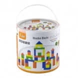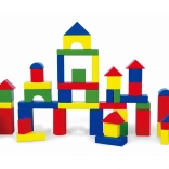 Drewniana konstrukcyjna układanka Viga z 50 kolorowymi klockami wspiera dziecięcą wyobraźnię, motorykę małą i orientację przestrzenną. Dzieci mogą budować domy, wieże czy mosty według własnej fantazji.