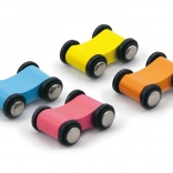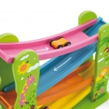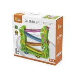 Ta pięknie kolorowa drewniana zjeżdżalnia jest idealna dla najmłodszych, którzy chcą się bawić i jednocześnie rozwijać swoje umiejętności. Zawiera rampę z kilkoma poziomami w różnych kolorach i umożliwia samochodzikiom płynny ruch po torze.