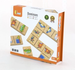 Urokliwe drewniane domino z motywem zwierząt domowych oferuje godziny zabawy i nauki dla Twojego dziecka. Każda kostka zawiera kolorowe ilustracje, które pomagają rozwijać umiejętność rozpoznawania wzorów oraz motorykę małą. Dzięki praktycznemu pudełku przechowywanie i przenoszenie gry jest łatwe i wygodne.