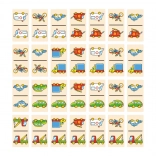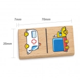 Drewniane domino z motywem samochodów. Ta edukacyjna i zabawna gra pobudza dziecięcą wyobraźnię i wspiera rozwój logicznego myślenia.