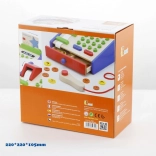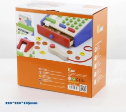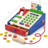 Kasa wykonana jest głównie z drewna i uzupełniona wytrzymałymi elementami z tworzywa. Idealna do zabawy w sklep w domu i w przedszkolu, gdzie naturalnie rozwija logiczne myślenie, kompetencje poznawcze oraz relację z liczbami w duchu Montessori.