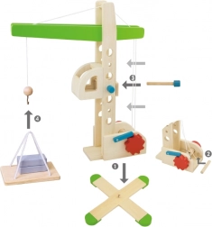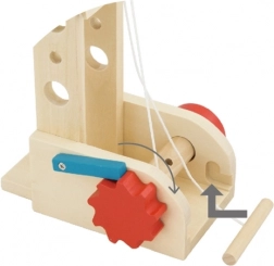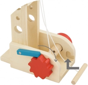 Dzieci mogą prostym obracaniem pokrętła podnosić i opuszczać ładunek. Mechanizm wspiera koordynację ręka–oko i zapewnia płynne, bezpieczne działanie.