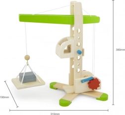 Ten drewniany dźwig z wyciągarką zapewnia dzieciom realistyczne doświadczenia z budowy. Obrotowe ramię, ręczne nawijanie i system bloczków pozwalają bezpiecznie podnosić i przenosić drobne przedmioty. Naturalne drewno, gładkie krawędzie i zielone detale podkreślają ponadczasowy design i trwałość zabawki.