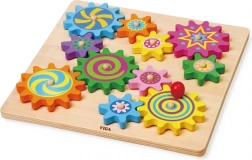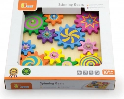 Jedno obrócenie wprawia w ruch cały układ. Dzieci intuicyjnie rozumieją, jak współpracują ze sobą zębate kółka i co powoduje ich ruch.
