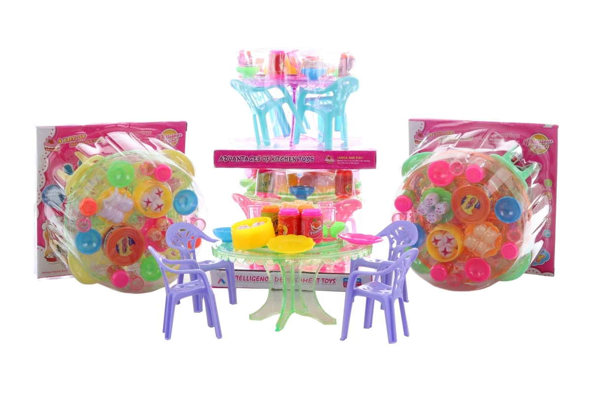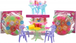 - Kompletny zestaw – plastikowy stolik, krzesełka i akcesoria