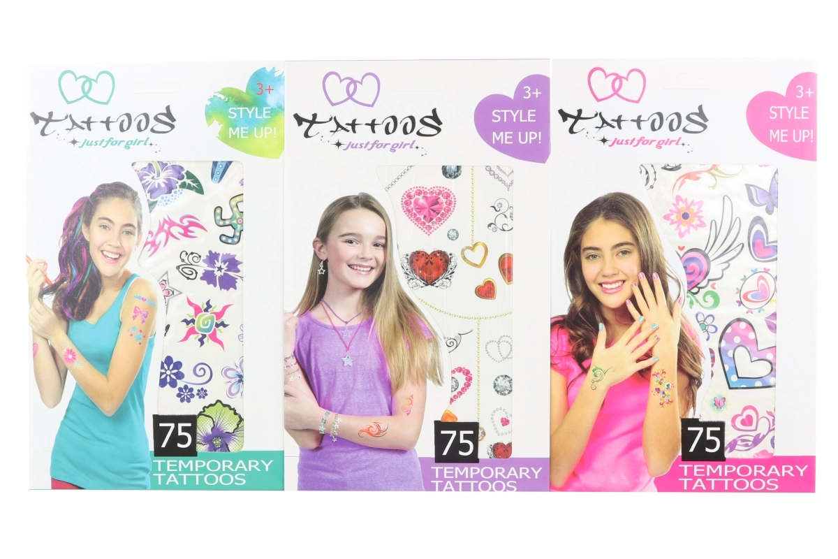 Rozbudź dziecięcą wyobraźnię dzięki zestawowi tymczasowych tatuaży dla dziewczynek. Opakowanie zawiera 75 różnych wzorów, łatwą aplikację i bezpieczne użytkowanie dla dzieci od 3 lat. Idealne na przyjęcia, prezenty i codzienną zabawę.
