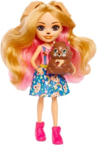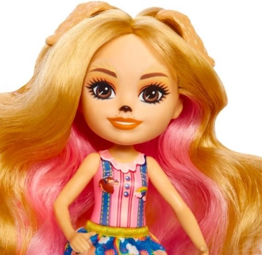 Laleczka Gerika Golden Retriever z kolekcji Enchantimals przynosi dzieciom delikatność, przyjaźń i radość z opieki nad zwierzątkami. Jej figlarny wygląd z kolorowymi włosami, uroczymi uszkami i nadrukiem piesków oraz tęczy na spódniczce inspiruje do opowiadania historii. Dzięki ruchomym kończynom łatwo przyjmuje różne pozy i pobudza wyobraźnię podczas zabawy.