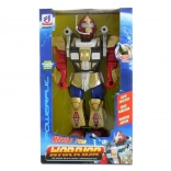 Ten plastikowy robot na baterie to idealna zabawka dla dzieci od 3 lat. Efekty świetlne i dźwiękowe przyciągają uwagę dziecka i pobudzają jego wyobraźnię. Robot potrafi chodzić, a jego interaktywne ruchy obejmują obracanie się oraz poruszanie mieczem i tarczą.