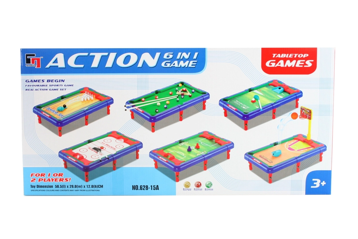 - 6 w 1 (kręgle, koszykówka, hokej na lodzie, bilard, golf, piłka nożna)