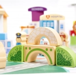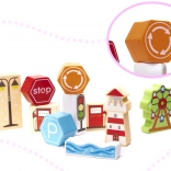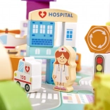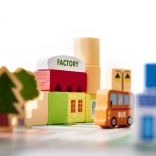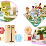 Ożyw kreatywność swojego dziecka z tą niezwykle kolorową drewnianą układanką zawierającą 120 elementów, idealną do tworzenia miejskiego środowiska. Kompletny zestaw obejmuje budynki takie jak szpital, fabryka, hotel, stacja paliw i straż pożarna, co pozwala dzieciom odkrywać i rozwijać ich wyobraźnię.