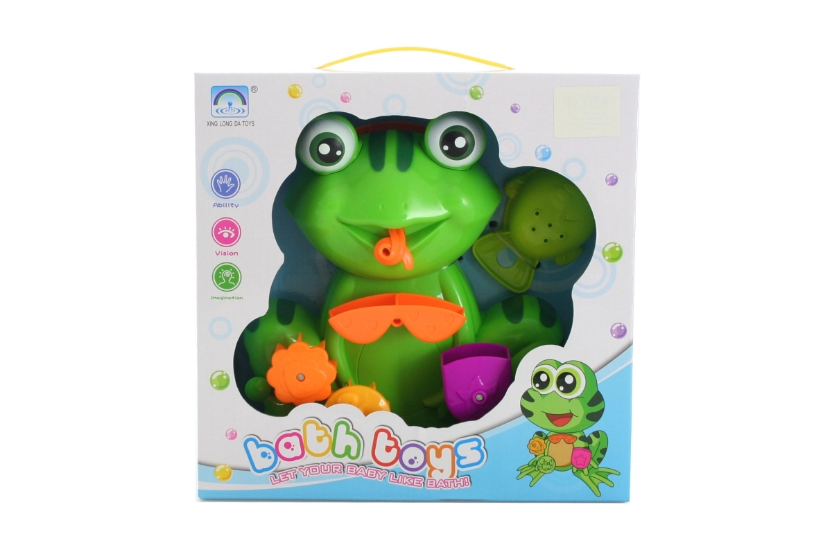 Zabawna plastikowa żaba do wanny z łatwym mocowaniem za pomocą przyssawek zamieni każdą kąpiel w zabawę. W zestawie znajduje się też uroczy pojemniczek/konewka w kształcie rybki do nalewania wody. Idealna dla dzieci od 3 lat. Łatwy montaż, wodne zabawy i rozwój motoryki małej, trwały plastik oraz bezpieczna zabawa w kąpieli.