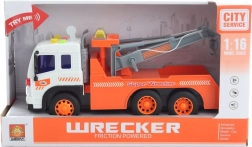 Plastikowy samochód holownik dla małych entuzjastów motoryzacji, który wydaje efekty świetlne i dźwiękowe przy naciśnięciu przycisków. Odpowiednie dla dzieci od 3 lat.