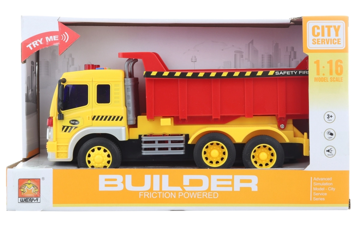 Ta dziecięca wywrotka zapewnia mnóstwo zabawy dzięki efektom świetlnym i dźwiękowym, które aktywują się po naciśnięciu przycisków. Dzięki wymiarom ok. 27 × 12 cm wygodnie leży w dłoni i idealnie nadaje się do zabawy na dywanie i w dziecięcym pokoju. Baterie są częścią zestawu, więc od razu możecie ruszać „na budowę”.