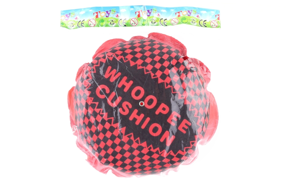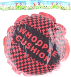Pierdząca poduszka o średnicy ok. 18 cm. Wymiary opakowania ok. 20 × 23 cm. Wiek 3+