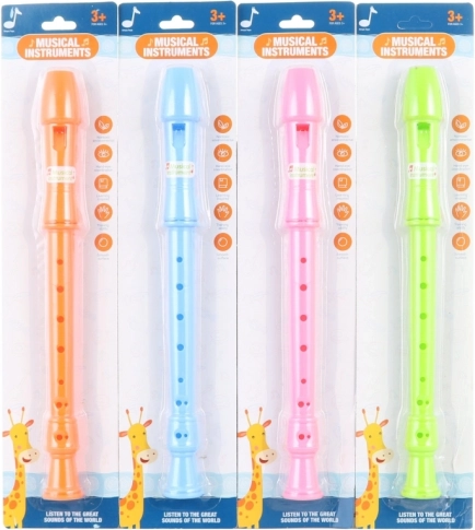 Plastowa flet prosty 31,5 cm dla dzieci od 3 lat. Lekki, wytrzymały i łatwy w obsłudze – idealny na pierwsze muzyczne kroki. Wymiary opakowania 40×9×3 cm.