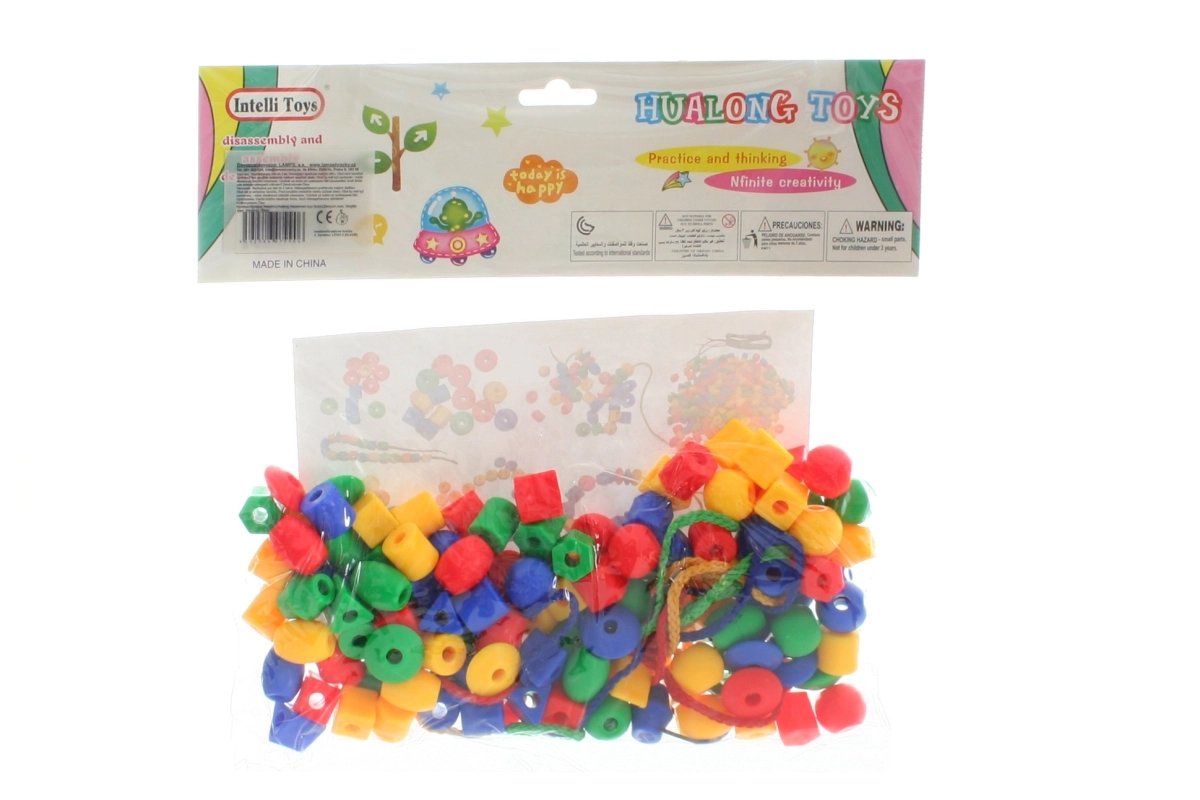 Zestaw sprawdzi się w domu i w przedszkolu. Dzięki kolorowym sznurkom nawlekanie jest łatwe i przyjemne. Koraliki mają około 1 cm, więc są wygodne do chwytania przez małe dziecięce rączki.