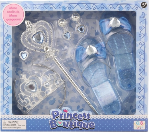 Rozpal dziecięcą wyobraźnię eleganckim zestawem akcesoriów dla księżniczki, który zawiera wszystko do królewskich przebierańców: pantofelki, koronę, berło, pierścionek i kolczyki. Idealny do zabaw dziecięcych, na karnawał i przebieranki w domu.