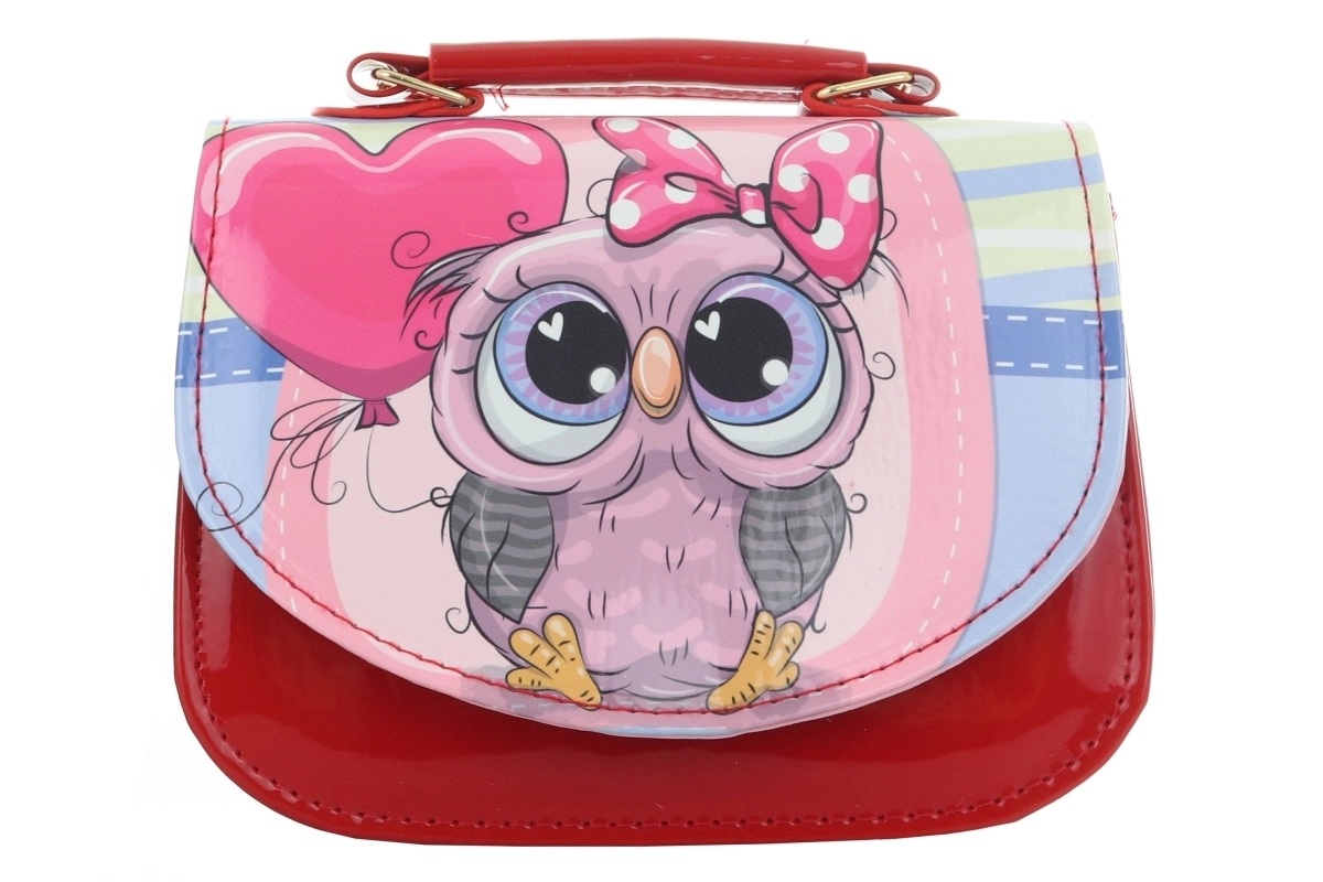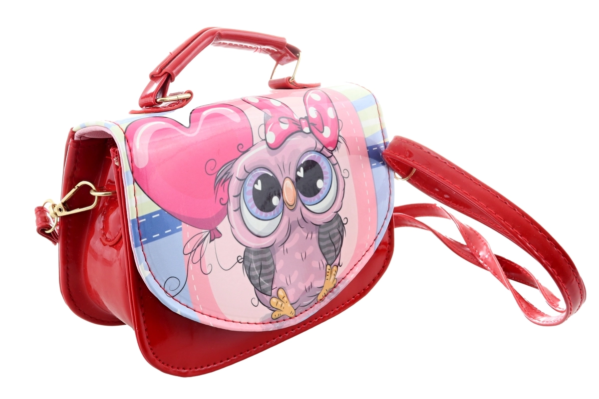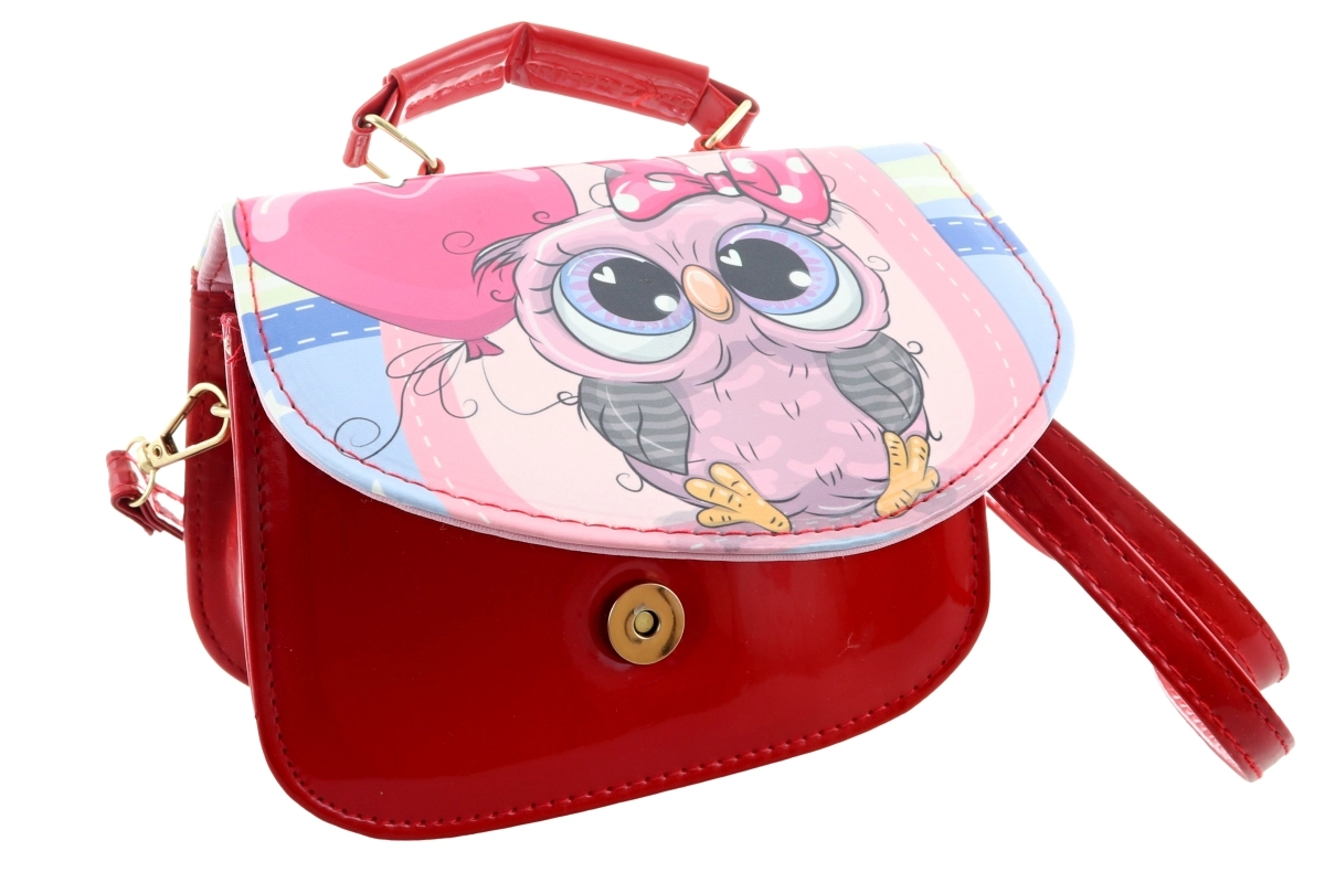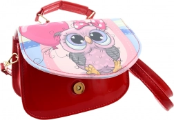 Dziecięca torebka z sówką, czerwona, błyszcząca
