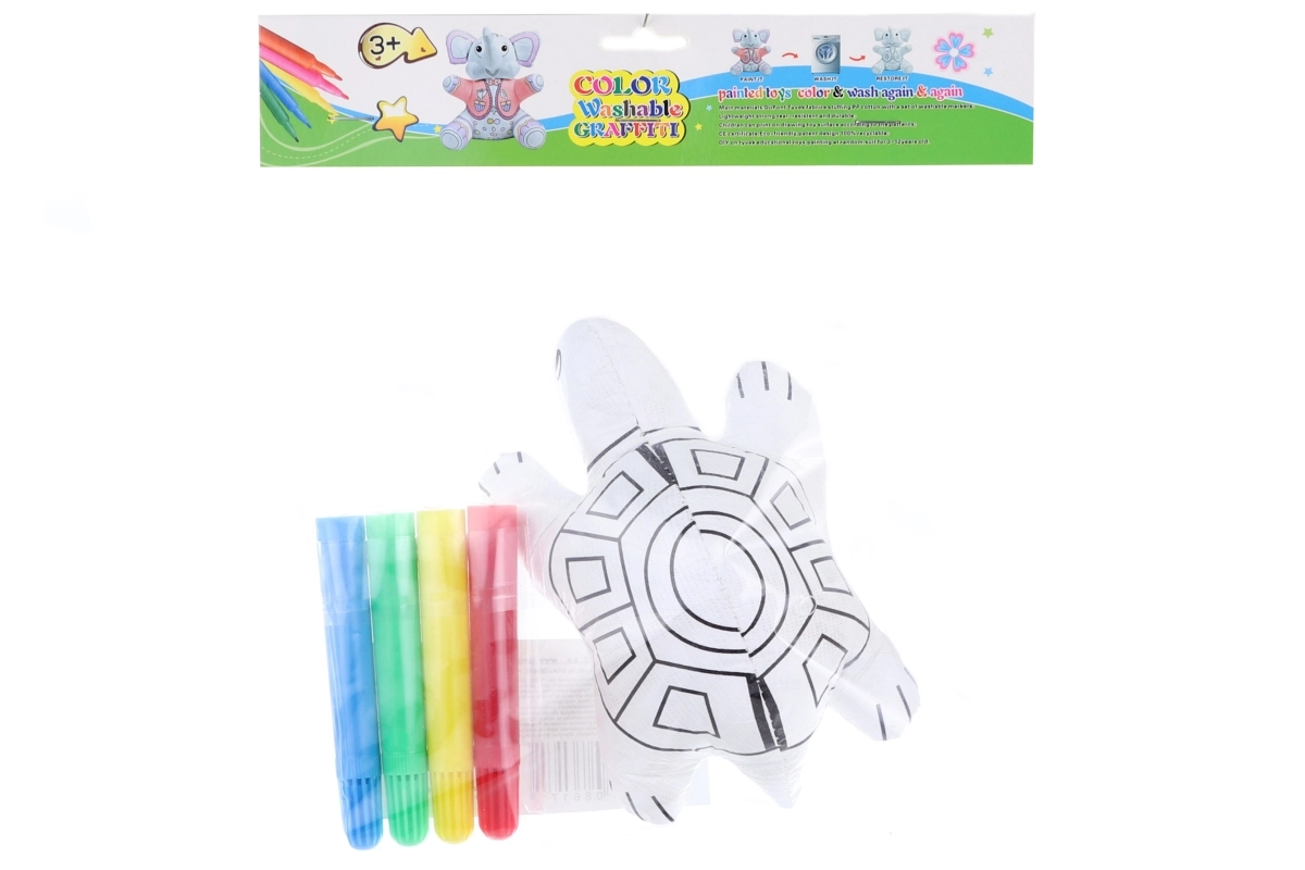 Odkryj kreatywną zabawę z tym malującym żółwiem, którego dzieci mogą wielokrotnie kolorować, prać i ponownie ozdabiać według własnej wyobraźni. W zestawie znajdują się 4 kolorowe pisaki, bezpieczny materiał poliestrowy oraz idealny rozmiar do dziecięcej dłoni. Świetny prezent dla dzieci od 3 lat.