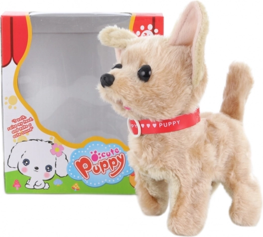 Ten pluszowy, chodzący piesek to idealny towarzysz dla małych miłośników zwierząt. Po włączeniu uroczo się porusza i wydaje szczekające dźwięki, wspierając wyobraźnię i interaktywną zabawę. Dzięki przyjemnemu w dotyku materiałowi i kompaktowym wymiarom łatwo go przenosić i przechowywać.
