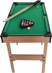 Kompaktowy dziecięcy bilard w wysokiej jakości drewnianym wykonaniu zapewnia świetną zabawę dla małych i dużych graczy. W zestawie znajdują się 2 kije, 16 bil oraz kompletne akcesoria. Dzięki wymiarom idealny do pokoju dziecięcego i do pierwszego zapoznania się z zasadami gry.