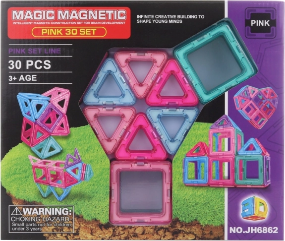 Ciesz się godzinami twórczej zabawy z tą magnetyczną układanką konstrukcyjną. Zestaw zawiera 30 elementów, które można łatwo łączyć dzięki magnetycznym krawędziom. Kolorowe elementy w odcieniach różowym, niebieskim i turkusowym są przezroczyste i efektownie prezentują się podczas budowania różnych obiektów 3D.