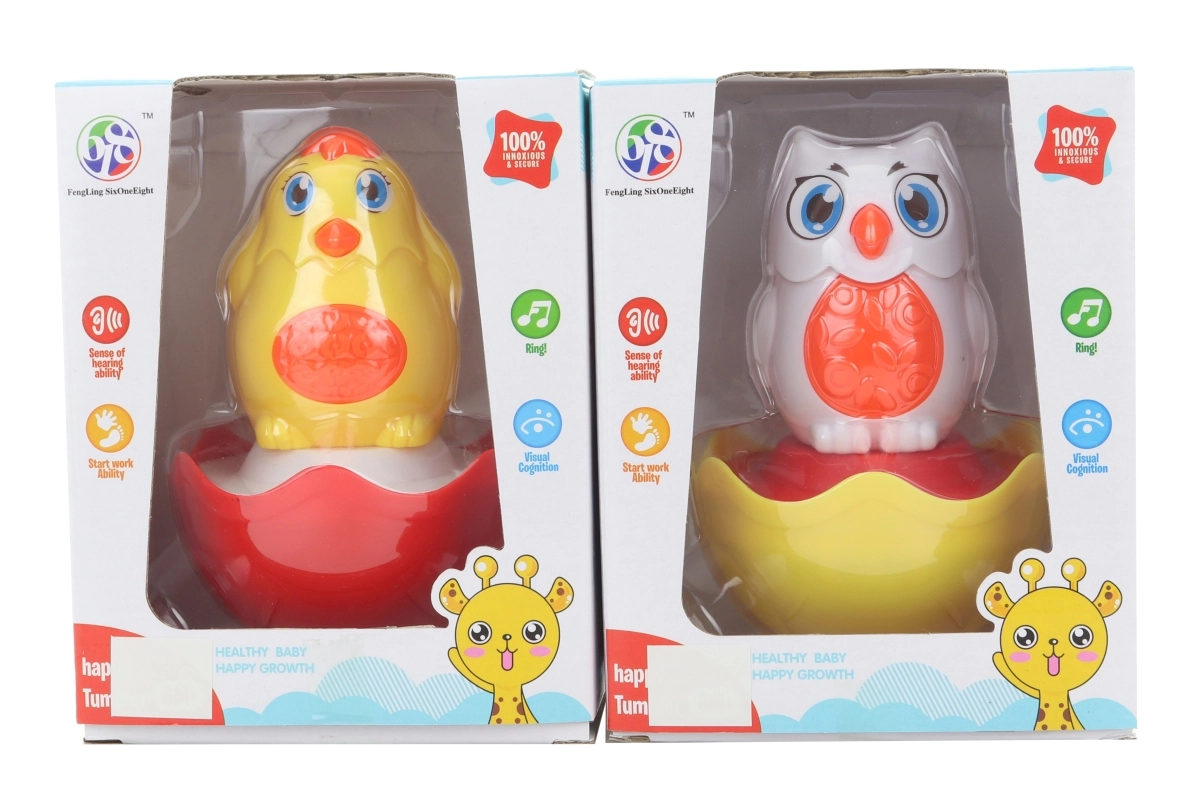 Rolly polly z kurczątkiem. Wymiary ok. 8 × 13 cm. Wymiary opakowania ok. 13 × 16,5 × 10 cm. Wiek 6m+