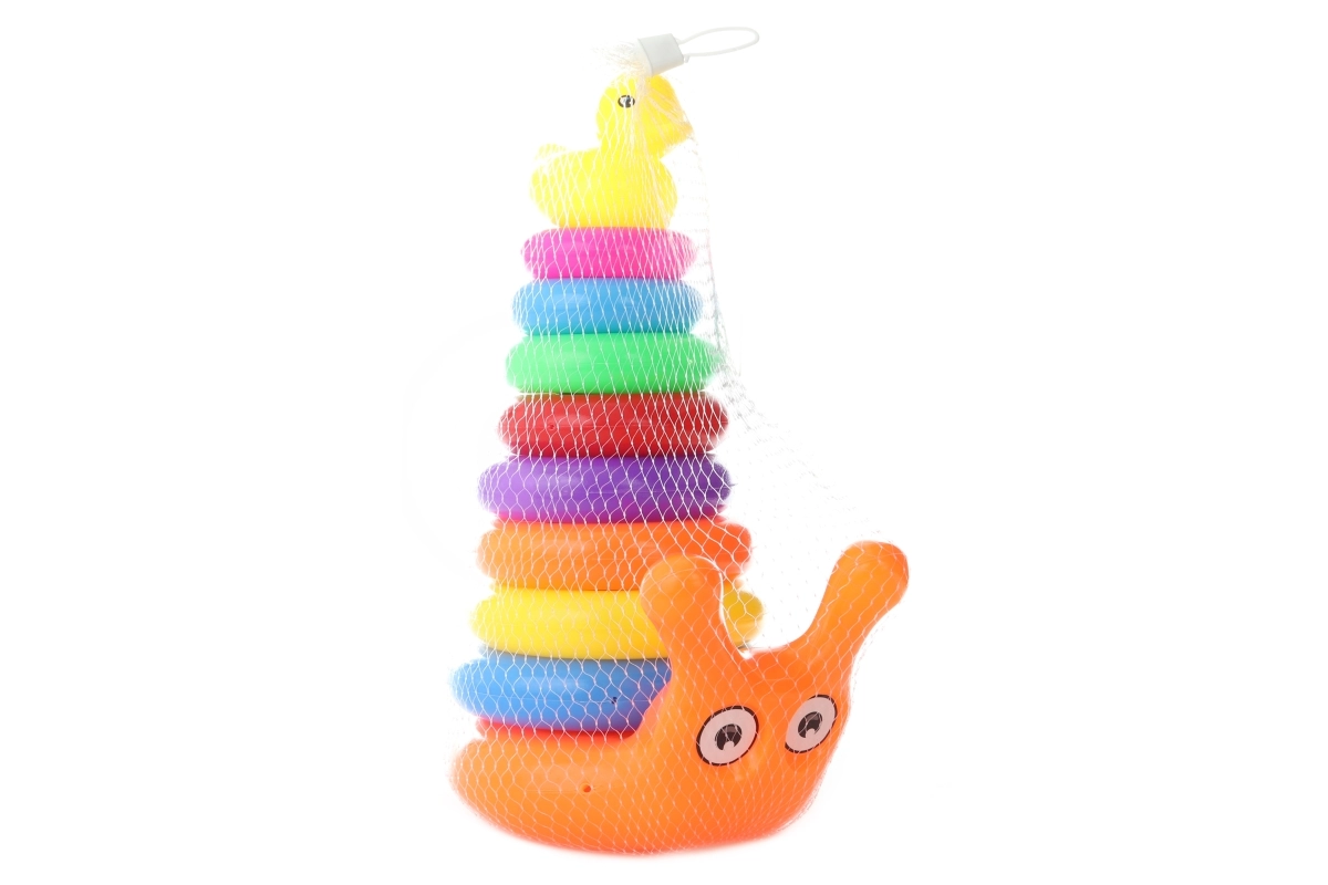 Uroczy słupek z kółkami w kształcie ślimaka ucieszy każde dziecko. Dzięki stopniowemu nakładaniu kółek maluchy ćwiczą cierpliwość, myślenie logiczne i zręczność. Ostatnim elementem jest plastikowa kaczuszka, która nadaje zabawie cel i dodatkową motywację.