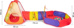 - Kompletny zestaw: namiot + tunel + suchy basen + 100 piłeczek + 3 piłeczki na rzep