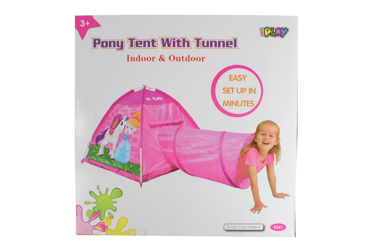 Stwórz dzieciom magiczne miejsce do zabawy dzięki namiotowi z tunelem. Dzięki motywowi kucyka i księżniczki mali miłośnicy bajek spędzą długie godziny na wspaniałej zabawie. Namiot nadaje się do pokoju dziecięcego oraz do ogrodu w ciepłe dni.