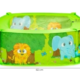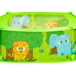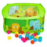 Zagroda z dnem z 50 piłeczkami – nie do wody, o wymiarach ok. 75 cm x 75 cm x 30 cm. W zestawie 50 piłeczek. Basenik można używać w domu w pokoju dziecięcym, a także latem na zewnątrz w ogrodzie. Dzieci będą miały mnóstwo zabawy podczas gry. Wiek 6m+
