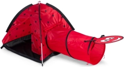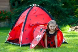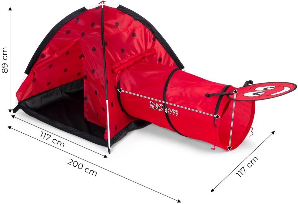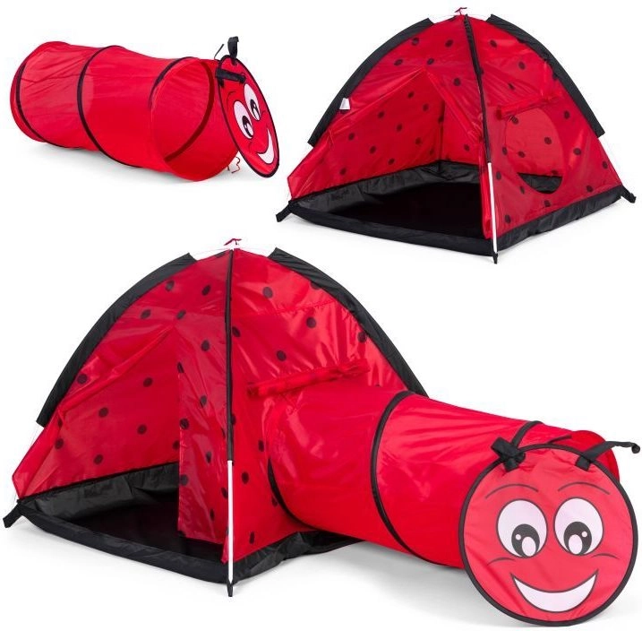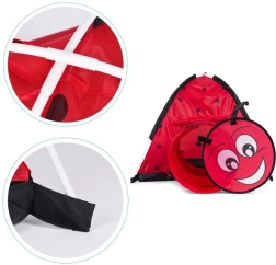 Zamień pokój lub ogród w miejsce pełne przygód. Dziecięcy namiot z motywem biedronki zachęca dzieci do odkrywania i twórczej zabawy. Konstrukcja igloo z jednym wejściem i możliwością podłączenia tunelu wspiera ruch, czołganie się i chowanie, co rozwija motorykę oraz wyobraźnię. Dzięki lekkiemu stelażowi namiot łatwo przeniesiesz, więc dzieci mogą się nim cieszyć wszędzie.