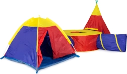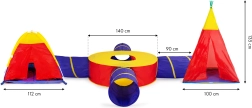 Dzieci pokochają przeciskanie się przez 4 tunele, zabawę w chowanego w igloo i tajną bazę w tipi z okienkiem i zamykanym wejściem. Okrągłe centrum z górną wentylacją łączy wszystkie części i wspiera zabawę zespołową. Materiał z wytrzymałego poliestru dobrze znosi codzienne użytkowanie w domu, na tarasie i w ogrodzie.