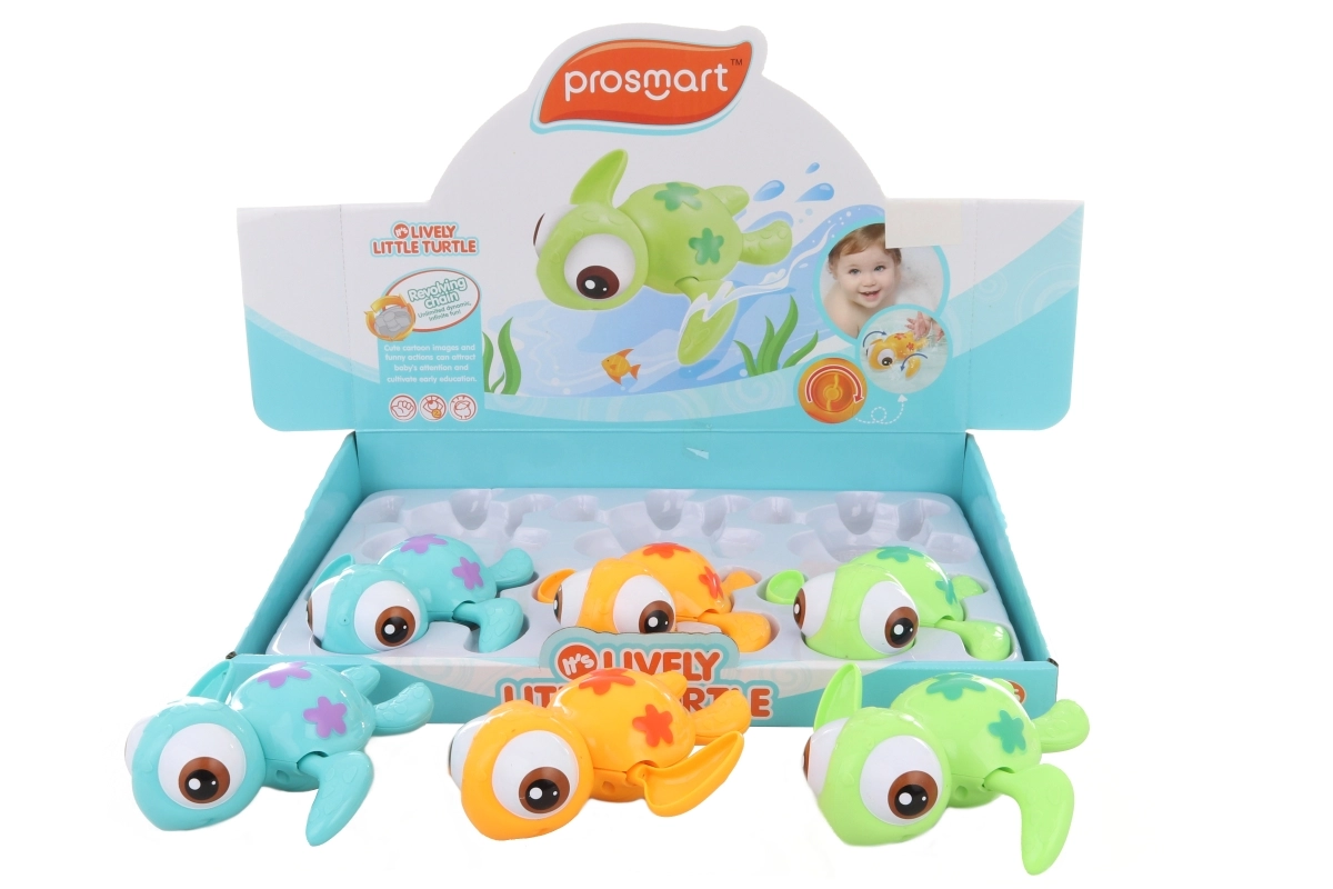 Ten uroczy nakręcany żółw to idealna zabawka do wanny, prysznica i dziecięcego baseniku. Wystarczy go nakręcić i obserwować, jak sam wyrusza na wodną wyprawę – płynie do przodu i porusza płetewkami. Dzięki kompaktowym wymiarom dzieciom wygodnie się go trzyma i obsługuje.
