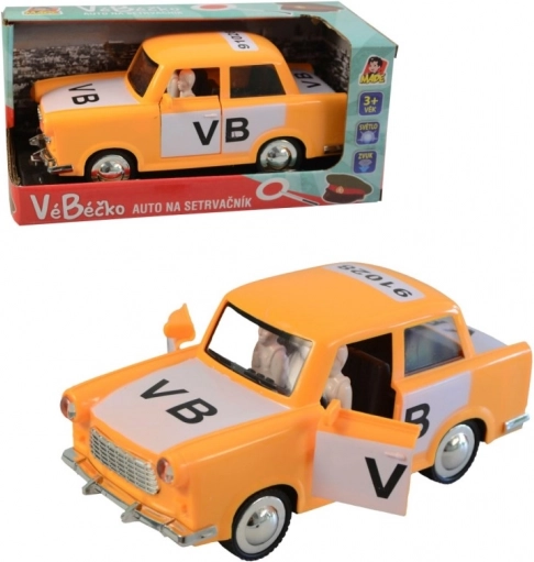 Cofnij się do czasów klasycznych samochodów służbowych z retro autem VB w żółtym wzornictwie Milicji Obywatelskiej. Dzięki mechanizmowi ciernemu wystarczy popchnąć auto, a ruszy do przodu; po naciśnięciu przycisku rozlega się realistyczny dźwięk silnika. Otwierane drzwi dodają zabawie autentyczności i pobudzają dziecięcą wyobraźnię.